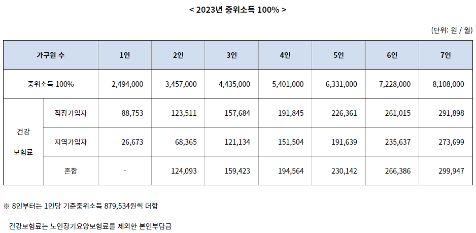 4. 가구소득은 기준중위소득 100%이하 가구가 신청 가능합니다. (표는 아래 참고하세요.)