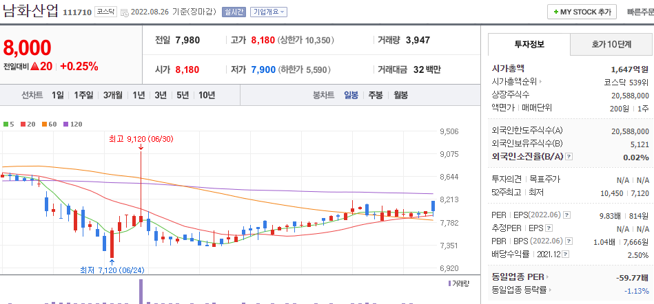 남화산업 차트