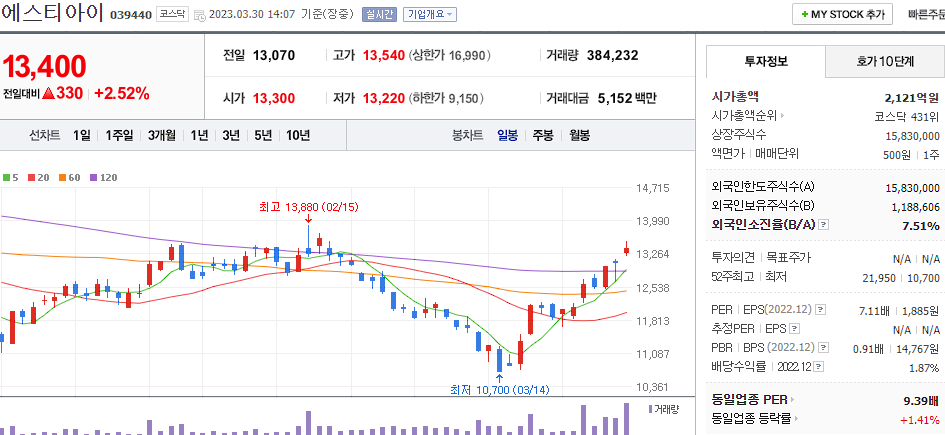 13. 에스티아이 [039440]