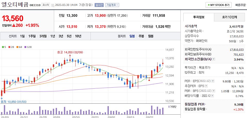 네이버 엘오티베귬 차트
