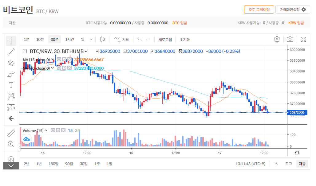 빗썸 차트 다크모드(어두운 배경) 나이트모드 설정하는 방법