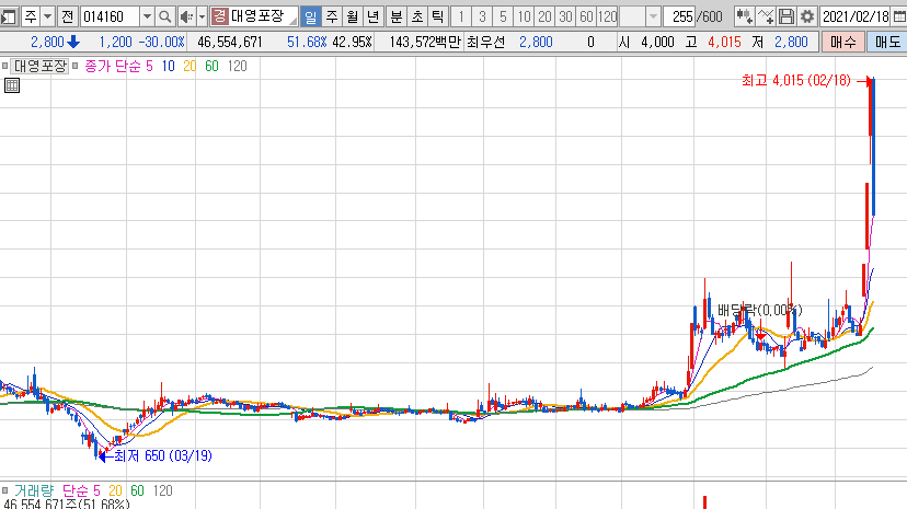 대영포장 일봉 차트