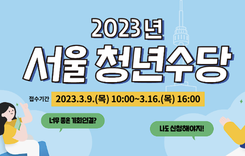 2023년 서울시 거주 청년수당 자격과 신청방법을 정리해 보겠습니다. 해마다 서울시에서는 청년수당을 지원하는 사업을 하는데요. 올해도 1만 5천명을 지원하는 청년수당을 사업을 오늘부터 지원을 받고 있습니다. 50만원을 6개월동안 총 300만원을 지원받기 때문에 일단 신청을 해보세요.